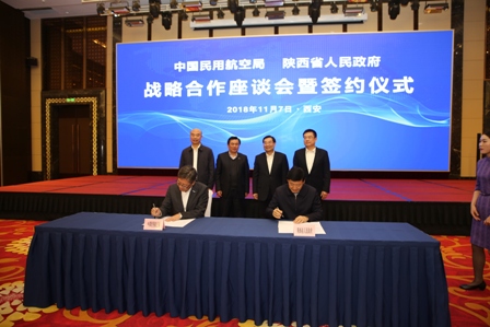 11月7日,民航局与陕西省战略合作座谈会在西安召开。民航局局长冯正霖、陕西省委书记胡和平出席会议并讲话,陕西省省长刘国中主持座谈会。民航局副局长王志清和陕西省副省长陈国强代表双方签署《关于推进陕西民航高质量发展战略合作协议》(以下简称《协议》)。西北国际货运航空公司在会上正式揭牌成立。